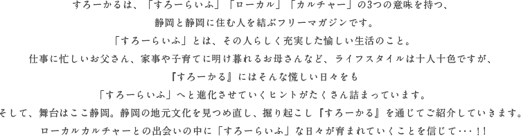 静岡県中部のフリーマガジン「すろーかる6月号」に掲載いただきました!地域をクローズアップした散策マップ、おすすめスポットの特集など、今の静岡がぎゅっと詰まった内容が掲載されている大人気の月刊フリーマガジン!