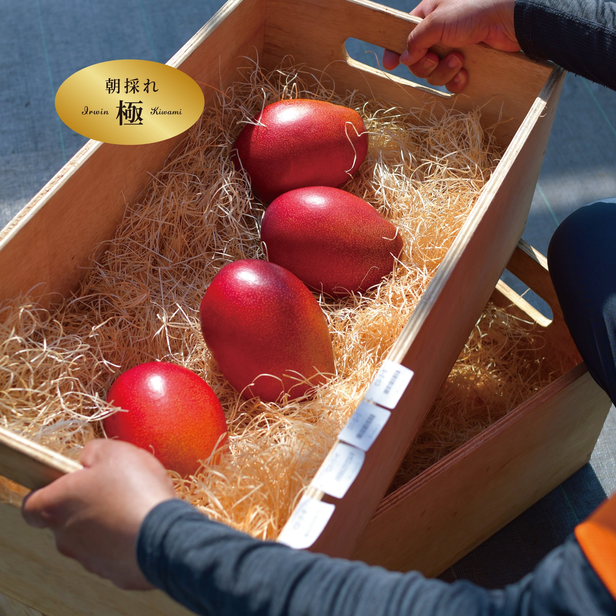 色・艶・形が著しく美しく芳醇な香りが高い玉であること、当園基準の糖度及び果重をクリアしていること、そして完全自然完熟落下までその基準を欠していないアーウィンのみ、プレミアム玉として判断し大切に管理しています。
