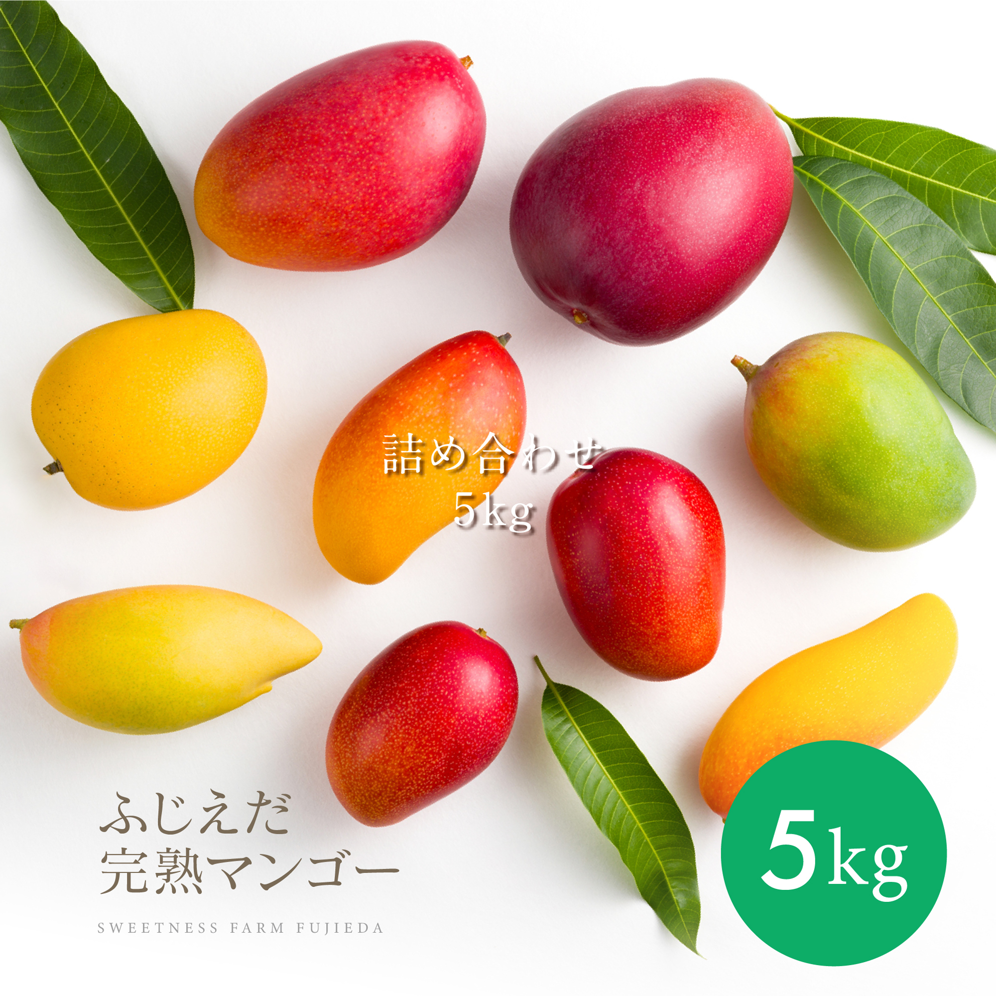 当園の早生5品種『アーウィン・ナンドクマイ・マハチャノック・紅キンコウ・紅キーツ』より、お買い得にミックスした ” 5kg詰合せマンゴー ” です。
