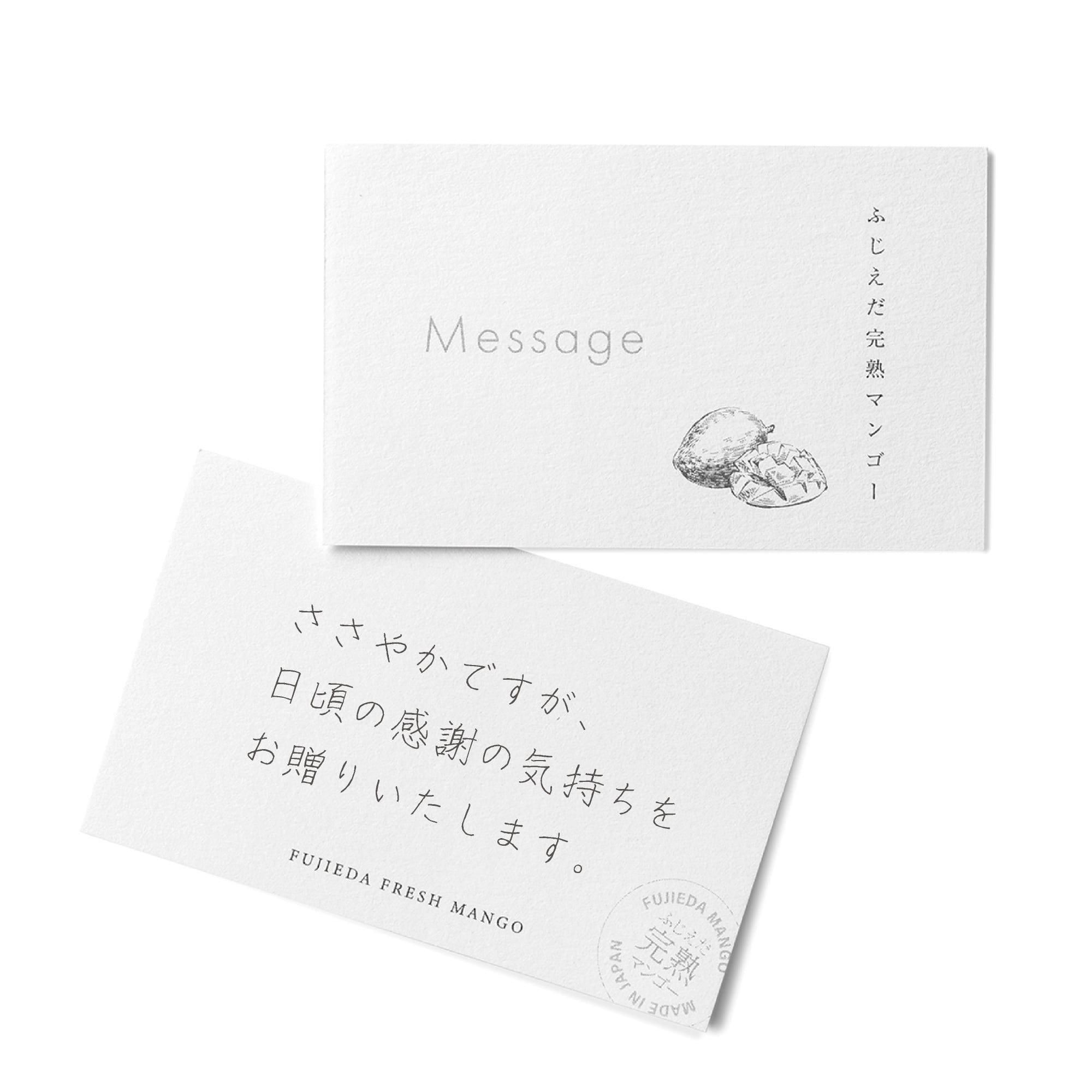 日頃の感謝をカードに綴って。お中元・各種贈答の際に、マンゴーと共に無料にて代筆した「ギフトカード」を同封いたします。【30文字以内を目安として】お気軽にご利用ください。
